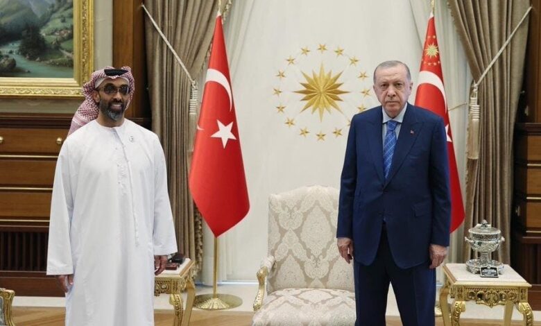 ولفتت الوكالة إلى أن رئيس النظام التركي والوفد الإماراتي تباحثا بشأن “سبل تعزيز العلاقات الثنائية بين دولة الإمارات العربية المتحدة والجمهورية التركية، خاصة التعاون الاقتصادي والتجاري والفرص الاستثمارية في مجالات النقل والصحة والطاقة بما يحقق المصالح المشتركة بين البلدين”.