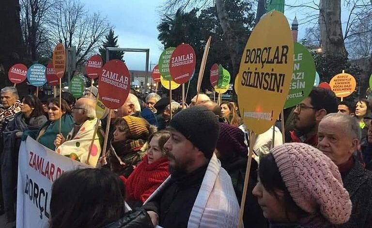 وذكرت مواقع محلية تركية معارضة أن الأتراك من حزب العمال التركي والحزب اليساري وحزب الشعوب الديمقراطي الكردي رفعوا، خلال مظاهرة الجمعة، لافتات كتبوا عليها: “أوقفوا الزيادة في الأسعار وامحوا الديون، نحن لا نستطيع العيش”.