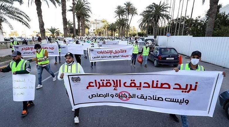 ولا تزال حالة الغضب والاحتجاجات مستمرة في الشارع الليبي، شرقًا وغربًا، للمطالبة بالانتخابات الرئاسية تليها البرلمانية في الموعد المطروح للنقاش وهو 24 من الشهر الجاري، احتجاجات متواصلة يراهن عليها الشارع في تغيير المعادلة الحالية، بحسب الخبراء والنشطاء.