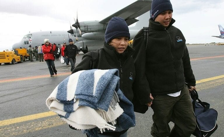 وقال بيان صادر عن سلاح الجو أن “طائرة سي-130 هيركليز اقلعت الساعة 16,55 (19,55 ت غ) من مدينة بونتا اريناس الى قاعدة الرئيس ادواردو فري” في القارة القطبية الجنوبية (أنتاركتيكا).