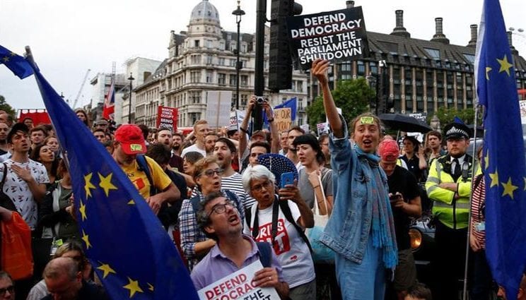 ووصف المحتجون المؤيدون لبقاء بريطانيا ضمن الاتحاد الأوروبي “بريكست” بـ “كارثة وطنية على وشك الحدوث، ومن شأنها تدمير اقتصاد البلد”.