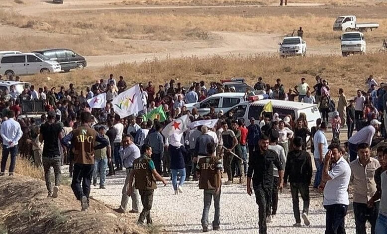 ثم سار المتظاهرون عدة كيلومترات لبلوغ قاعدة بالقرب من قرية تل أرقم الواقعة تحت سيطرة التحالف الدولي الذي تقوده واشنطن، حليفة القوات الكردية، وفقاً للمصدر نفسه.