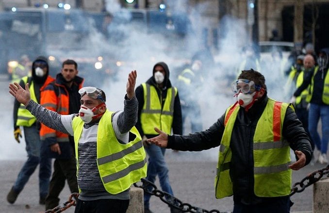 أطلقت شرطة باريس الغاز المسيل للدموع في شمال غرب وجنوب العاصمة الفرنسية السبت لصد محتجين في الذكرى السنوية الأولى لمظاهرات “السترات الصفراء” المناهضة للحكومة. وفي ساحة بلاس ديتالي بجنوب باريس، ارتدى الكثيرون ملابس سوداء وغطوا وجوههم وأشعل محتجون النار في صناديق قمامة وأطلقوا مقذوفات على شرطة مكافحة الشغب بينما كانوا يضعون المتاريس.