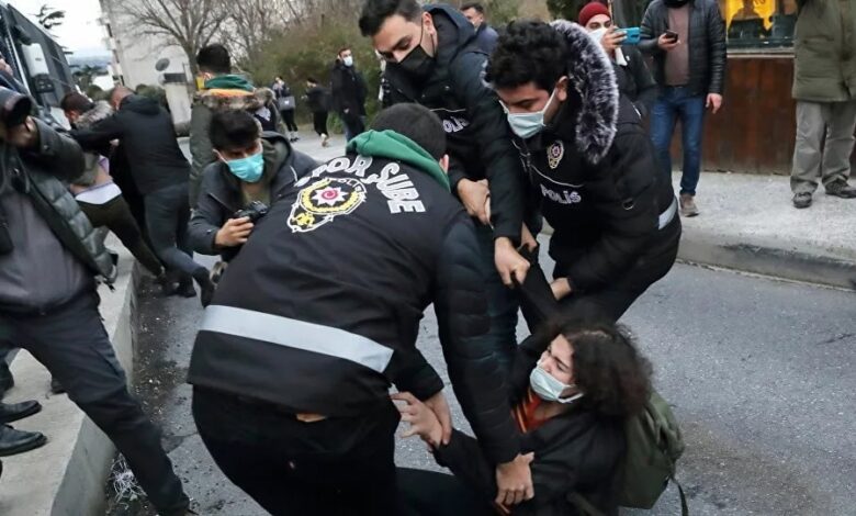 اعتقلت قوات الأمن التركية، الإثنين، 159 شخصا إثر احتجاجات طلابية في إسطنبول على تعيين رئيس النظام التركي رجب طيب أردوغان عميدا جديدا في إحدى أكبر الجامعات في البلاد”، بحسب ما ذكره مكتب حاكم إسطنبول.