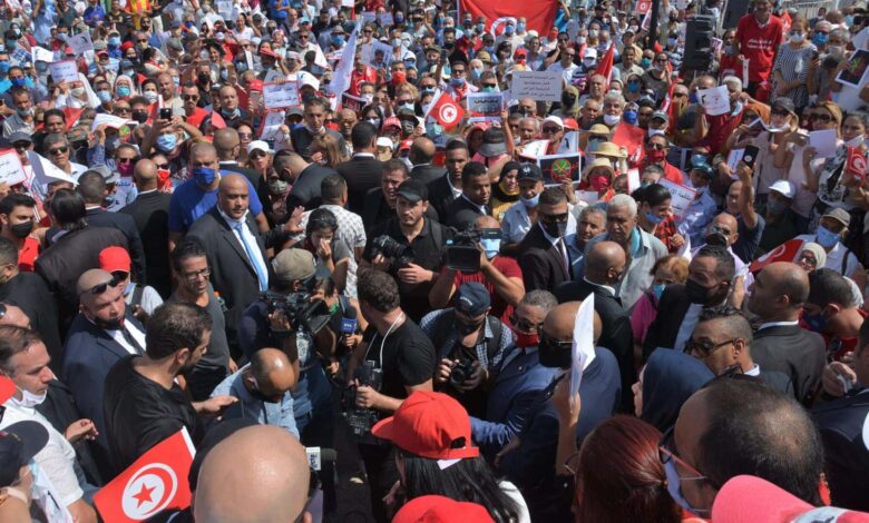 التونسيون يتظاهرون ضد الإرهاب وسياسيات الإخونجية في البلاد