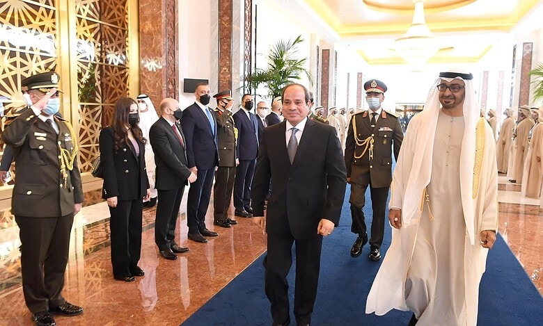 وقال ولي عهد أبو ظبي، خلال استقباله الرئيس المصري والوفد المرافق في قصر الوطن بالعاصمة الإماراتية، إن العلاقات بين الإمارات ومصر “تاريخية وأخوية متينة، وهناك دائماً رغبة مشتركة ومتجددة لتعزيزها في مختلف القطاعات الحيوية الاقتصادية والاستثمارية وغيرها من المجالات التي تشهد باستمرار تقدماً وتطوراً”.