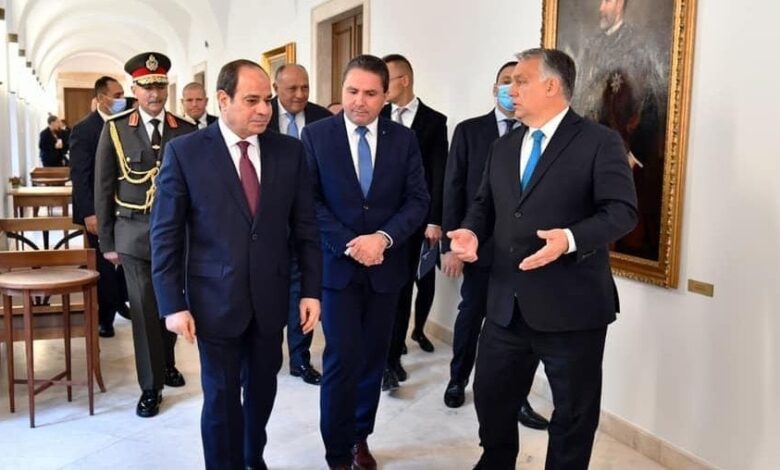وقال المتحدث باسم الرئاسة المصرية في بيان، إن السيسي وأوربان تبادلا الرؤى في ما يخص تطورات عملية السلام في الشرق الأوسط ومستجدات قضية سد النهضة.