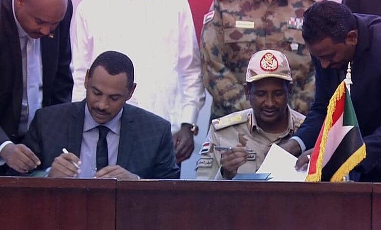 ويأتي التوقيع النهائي على وثائق المرحلة الانتقالية بعد أسابيع من المفاوضات المتواصلة بين المجلس العسكري الانتقالي، الذي يحكم السودان منذ عزل الرئيس السابق، عمر البشير، وقوى الحرية والتغيير، التي قادت الحراك في الشارع.