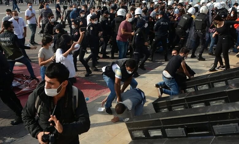 اعتقلت شرطة مكافحة الشغب التركية في إسطنبول، الأربعاء، عشرات المتظاهرين المنددين بالسياسات الاقتصادية للحكومة وارتفاع تكاليف المعيشة، وقامت بالاعتداء على عدد منهم وتفريق الحشود بالقوة.