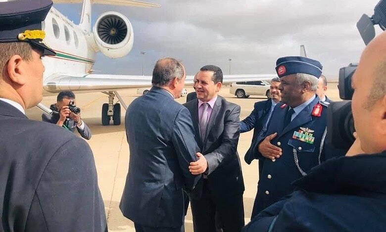 وكان في استقبال الوزير الجزائري بأرض مطار بنينا في بنغازي، رئيس أركان القوات الجوية الفريق صقر الجروشي.