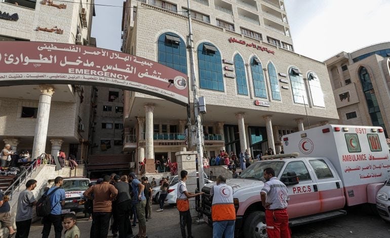 وناشد الهلال الأحمر، المجتمع الدولي واللجنة الدولية للصليب الأحمر، بالتدخل الفوري والعاجل لحماية مستشفى القدس وحماية من فيه من طواقم طبية و500 مريض وأكثر من 14 ألف نازح وفقاً للقانون الدولي الإنساني، وضرورة إيصال المساعدات الطبية والإنسانية بشكل عاجل.