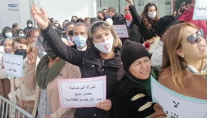 وتأتي المظاهرة تنديدا بتصريحات أدلى بها النائب عن ائتلاف الكرامة محمد العفاس، تضمنت إهانة للمرأة التونسية، وتكفير نواب المعارضة البرلمانية.