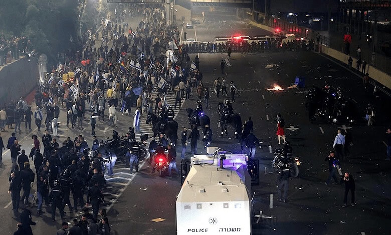 وتصاعدت الدعوات في إسرائيل مساء الأحد، إلى إضراب جماعي بعدما أقال رئيس الوزراء بنيامين نتنياهو وزير دفاعه يوآف جالانت، إثر دعوته لوقف التعديلات القضائية، فيما وقعت اشتباكات عنيفة بين قوات الشرطة وآلاف الإسرائيليين الذين خرجوا للتظاهر احتجاجاً على القرار مطالبين بوقف إصلاحات القضاء.