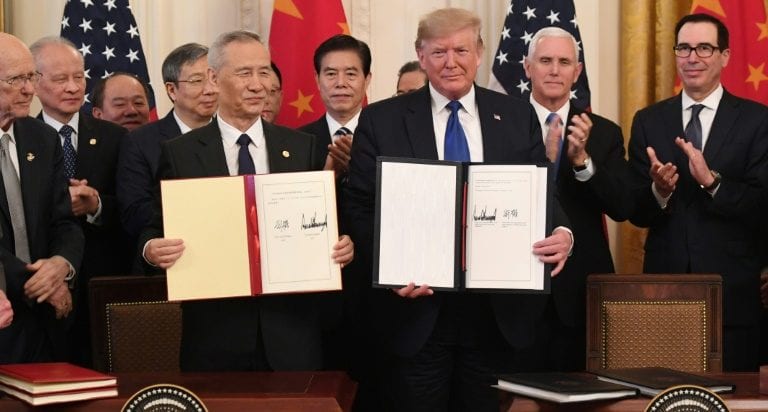 وقع الرئيس الأميركي دونالد ترامب الأربعاء مع نائب رئيس وزراء الصين ليو هي اتفاقا تجاريا يشكل على قوله “محطة تاريخية” تعلق الحرب التجارية غير المسبوقة بين أكبر قوتين اقتصاديتين في العالم.