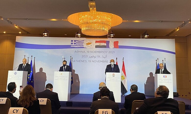 جاء ذلك خلال مؤتمر صحافي مشترك مع نظرائه من فرنسا واليونان وقبرص، في العاصمة اليونانية أثينا، بعد اجتماع في إطار التعاون الاستراتيجي المستمر بين الدول الأربع، بشأن مختلف القضايا السياسية والاقتصادية.