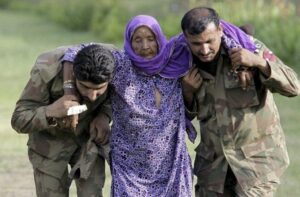 كما تم تداول صورة زُعم أنها تظهر امرأة سورية باللون البنفسجي يحملها جنود أتراك، وحصدت على إعادة تغريد بشكل واسع، ولكن في الواقع تمت سرقتها من وكالة “أسوشيتد برس” في عام 2010، أثناء عمليات الإجلاء من الفياضانات التي اجتاحت باكستان.
