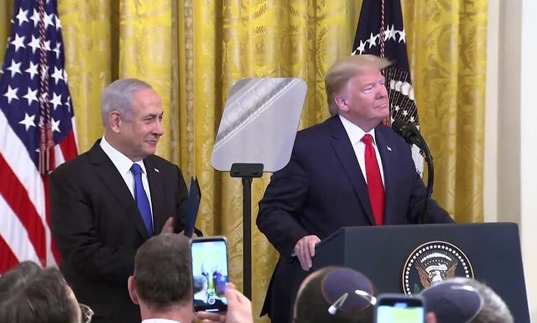 أعلن الرئيس الأميركي دونالد ترامب، في مؤتمر صحفي مشترك مع رئيس الوزراء الإسرائيلي بنيامين نتنياهو في البيت الأبيض، الثلاثاء، خطته المقترحة للسلام بين الإسرائيليين والفلسطينيين.
