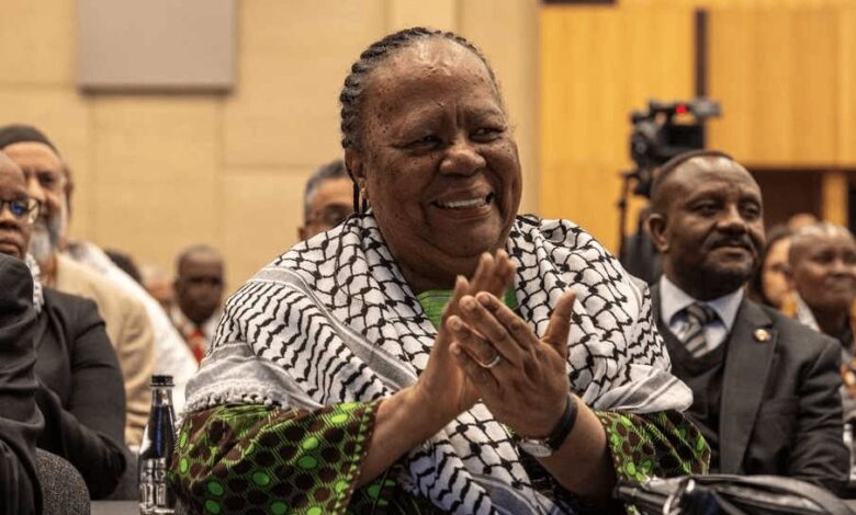 وأوضحت الوزيرة الجنوب إفريقية التي كانت ترتدي الكوفية الفلسطينية: “جونسون قال إنه إذا سُمح للمحكمة الجنائية الدولية بملاحقة قادة إسرائيل، فإننا نعلم أن أميركا ستكون التالية. ردنا هو: بالطبع!”.