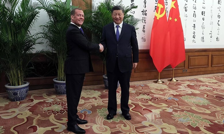 بالتزامن مع الاستعداد لانطلاق مناورات بحرية مشتركة بالذخيرة الحية بين روسيا والصين، عقد الرئيس الصيني شي جين بينغ، اليوم الأربعاء، اجتماعاً مع نائب رئيس مجلس الأمن الروسي، دميتري ميدفيديف، بمقر الحكومة الصينية في العاصمة بكين، حيث نقل ميدفيديف خلال الاجتماع رسالة من الرئيس الروسي فلاديمير بوتين إلى نظيره الصيني.