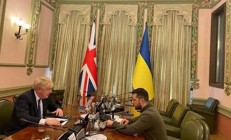 وأظهرت صورة زيلينسكي وجونسون يعقدان مباحثات وجها لوجه، بشأن تطورات الأوضاع في أوكرانيا.
