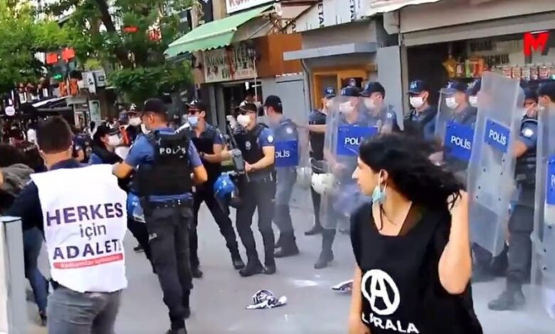 هاجمت الشرطة في العاصمة أنقرة متظاهرين حاولوا التجمع في نقطتين لإحياء الذكرى السنوية لمذبحة سروج التي سعت مبادرة “أسر سوروج” لإقامتها، وحاصرت الشرطة الحشود التي رفعت لافتة كتب عليها “العدالة لسوروج، العدالة للجميع” في شارع أتاتورك، ومنعت الصحافيين والمواطنين من التصوير.
