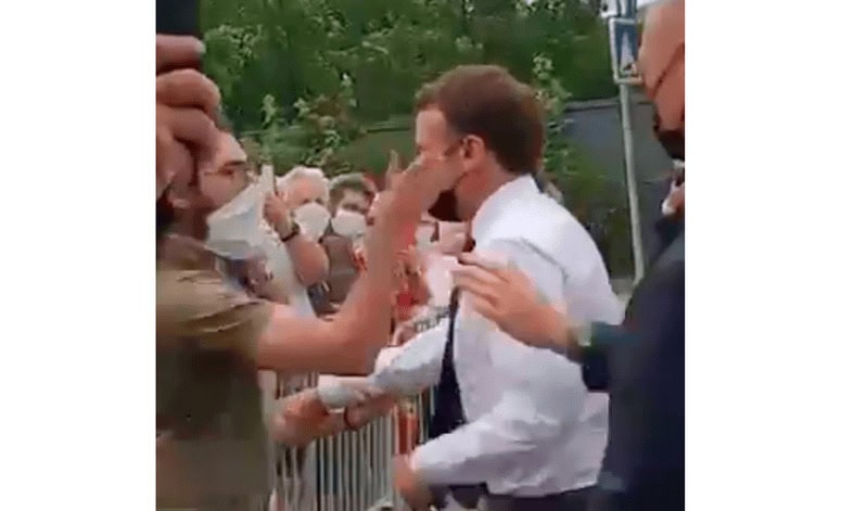 وأظهر مقطع الفيديو، تعرض ماكرون للصفع من رجل كان في حشد تجمع لرؤية الرئيس أثناء قيامه بجولة جنوب البلاد.