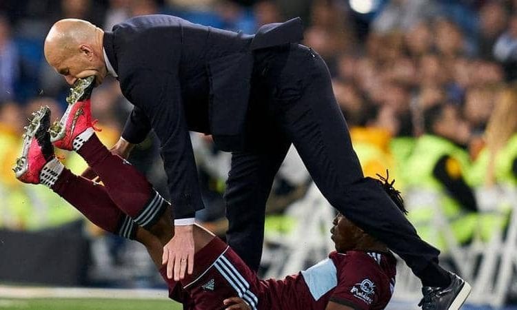 تعرضت مساعي ريال مدريد لإحراز لقب الدوري الإسباني لكرة القدم لانتكاسة بعدما اكتفى فريق المدرب زين الدين زيدان بالتعادل 2-2 بملعبه مع سيلتا فيغو، الأحد، فيما شهدت المباراة اصطدام لاعب من سيلتا فيغو بالمدرب الفرنسي.
