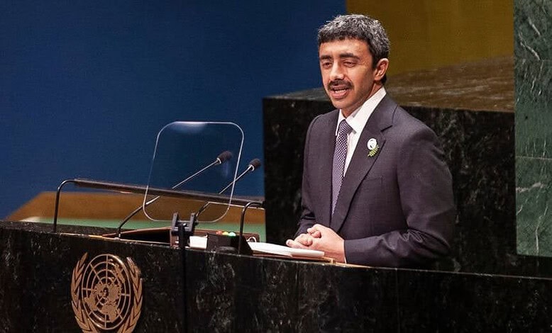 وأضاف الشيخ عبد الله بن زايد في كلمة له أمام الجمعية العامة للأمم المتحدة، أن الإمارات لن تتخلى عن حقنا بالسيادة على الجزر التي تحتلها إيران.