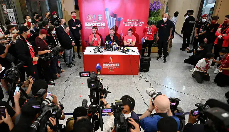وكان فريق مانشستر يونايتد قد وصل السبت إلى بانكوك ولكن دون حضور نجمه البرتغالي كريستيانو رونالدو، ولم ينل ذات الترحيب الحار الذي حظي به وصيف الدوري الإنجليزي ودوري أبطال أوروبا.