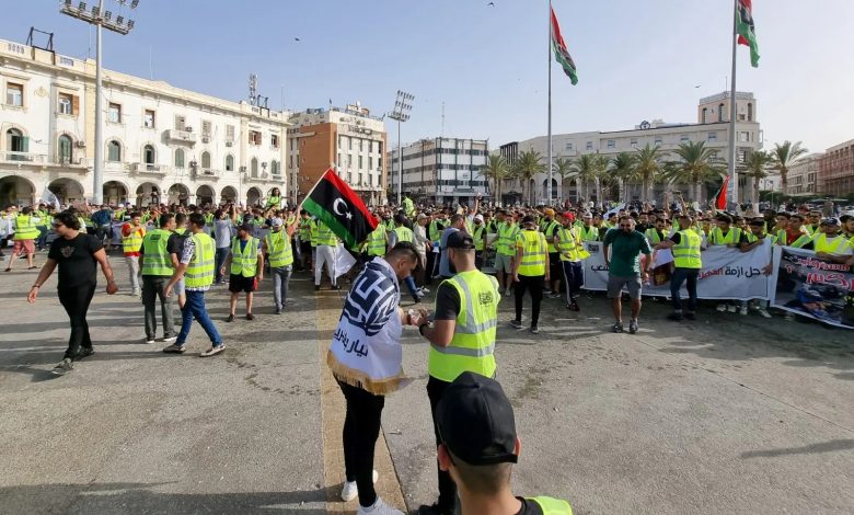 The protesters demanded the departure of Abdul Hamid Al-Dabaiba and the State Council, and accused them of thwarting the political track in the country by implementing plans Brotherhood organization Aiming to thwart the parliamentary and presidential elections, they demanded that the Presidential Council be given all powers, declare a state of emergency, provide an explanation for the electricity crisis, and cancel the decision to lift fuel subsidies.