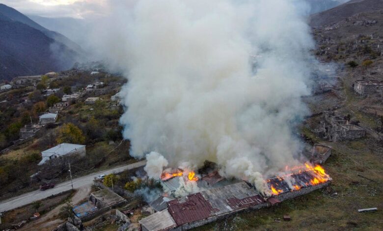 Armenians Set Fire To Homes Before Handing Village Over To Azerbaijan