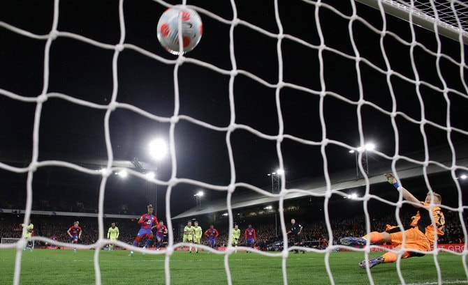 Palace took the lead in the 16th minute after Ben White needlessly fouled Zaha.