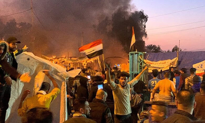 “All the tents were burned in the square and it is in the control of al-Sadr’s followers now,” said Fadi al-Hussein, a protester. “The police did nothing. We left the square.”
