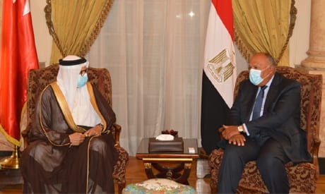 During their meeting, Shoukry and Al-Zayani said a solution to the Israeli-Palestinian conflict should be based on the two-state solution and the rules of international law and resolutions.