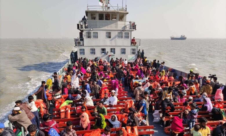 The Rohingya carried bags of belongings, toys and chickens and took selfies with each other as they sat on wooden benches during the three hour trip from Chittagong to Bhashan Char.