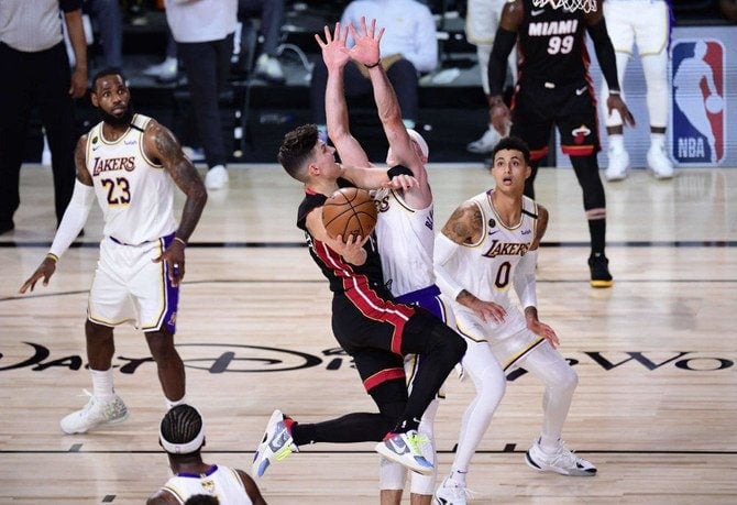 The Heat answered with an 11-0 burst to take the lead back. Davis got his third foul with 5:28 left and Miami up by five, but the Lakers weathered his absence and went into the break down just 58-54.