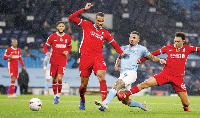 City drew level just after the half-hour mark when De Bruyne picked out Gabriel Jesus in the area with his back to goal. The City striker cleverly turned past Trent Alexander-Arnold and poked past Alisson Becker.