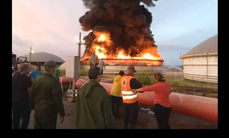 The accident comes as Cuba struggles with fuel shortages. There was no immediate word on how much oil had burned or was in danger at the storage facility, which has eight giant tanks that hold oil used to fuel electricity generating plants.