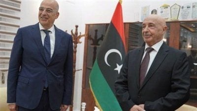 Greece’s Foreign Minister, Nikos Dendias, arrived in eastern Libya today where he met with the Speaker of the House of Representatives, Aguila Saleh, to discuss the Libyan conflict and bilateral relations between the two countries.