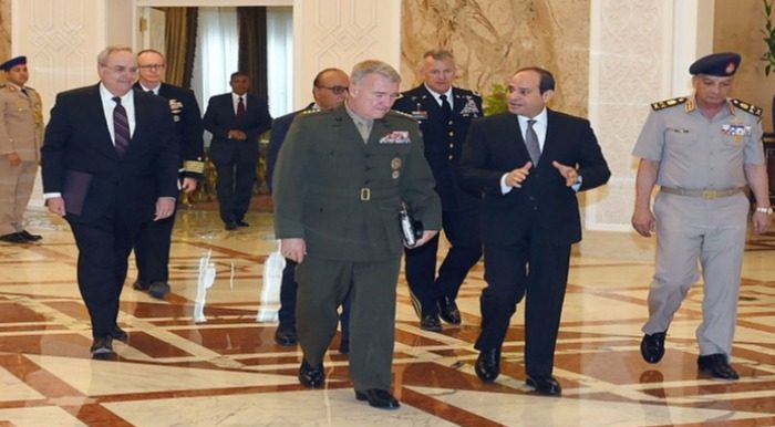 Egyptian President Abdel-Fattah al-Sisi and visiting Commander of U.S. Central Command Kenneth McKenzie discussed on Monday ways to strengthen cooperation in the military, security and anti-terrorism fields.