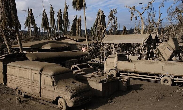 The volcano shot ash 15 kilometres (nine miles) high in the January 12 eruption, which crushed scores of homes and killed livestock as well as crops.