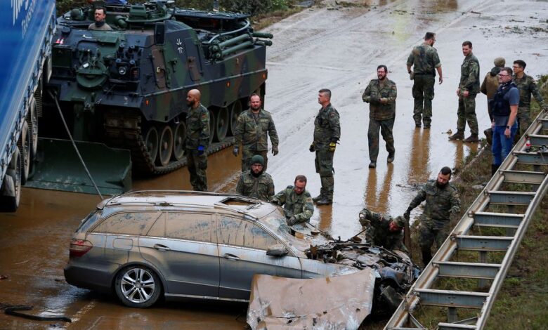 Rescue workers searched flood-ravaged parts of western Germany for survivors on Saturday as water levels remained high in many towns and houses continued to collapse in the country’s worst natural disaster in half a century.