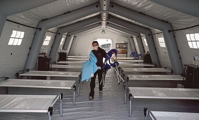 A US military medical ship steamed into New York, where it will relieve pressure on the city’s badly stretched health system. A field hospital set up in Central Park was due to go online later Tuesday.