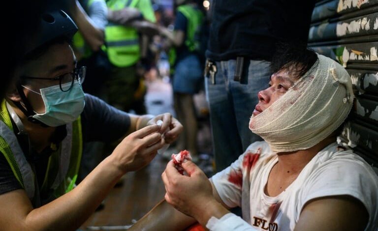 In the evening, a group of men armed with long sticks, clashed with protesters in North Point, a neighbourhood where many Chinese migrants live and is known for its strong Beijing ties. They chased and beat protesters, who threw traffic cones and barricades in return.