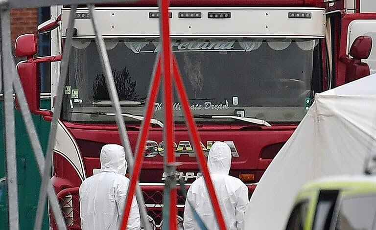Britain launched a major murder investigation after 39 dead bodies were found Wednesday in a refrigerated truck, once again putting the spotlight on the shadowy people trafficking business.