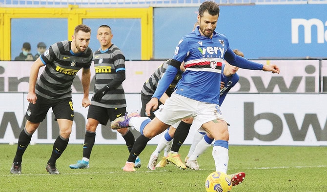 Inter Milan’s chances of winning their first Serie A title in more than a decade took a hit with a 2-1 loss at Sampdoria on Wednesday as veteran coach Claudio Ranieri’s team got the better of Antonio Conte’s Nerazzurri.