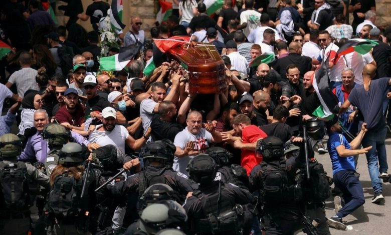 Israeli police attacked carriers and mourners at Abu Akleh’s funeral as the event was broadcast live on television around the world, with thousands gathering to watch her coffin being transferred from St Joseph Hospital to her final resting place on Mount Zion, just outside the Old City. by i Jerusalem.