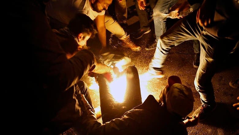 Protesters in Riad al-Solh Square smothered the flames with jackets and blankets, an AFP photographer said.