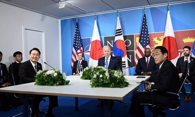 North Korea has accused the US and its allies of launching a “sinister” attempt to form an “Asian Nato” to contain the regime, hours before Joe Biden and his Japanese and South Korean counterparts meet for security talks.