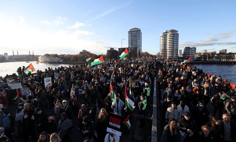 Pro-Palestinian protesters blocked roads outside the British parliament in London on Saturday, demanding an immediate ceasefire in the Israel-Hamas conflict and clashing with police who prevented them from marching across Westminster Bridge.